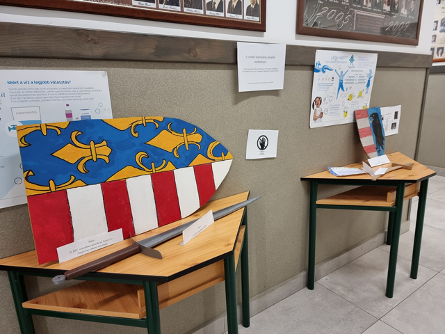 Az első emeleti folyosón a 6. osztályosok minitárlattal lepték meg az iskola közösségét. Történelemórákon négy 14-15. századi magyar uralkodóról készítettek projektmunkát, amelynek kreatív és igényes eredményeit állították ki néhány napra.